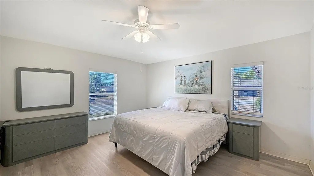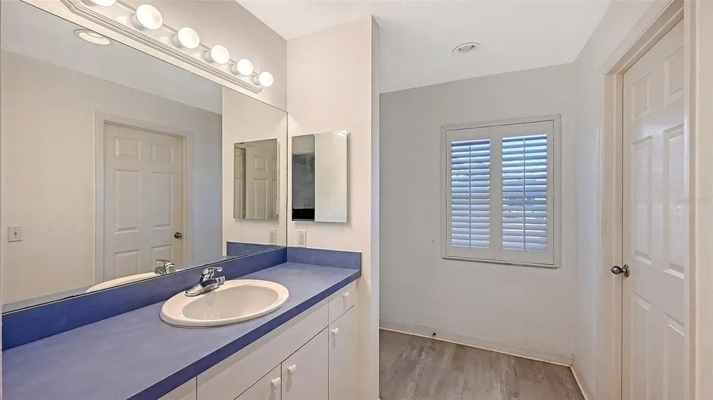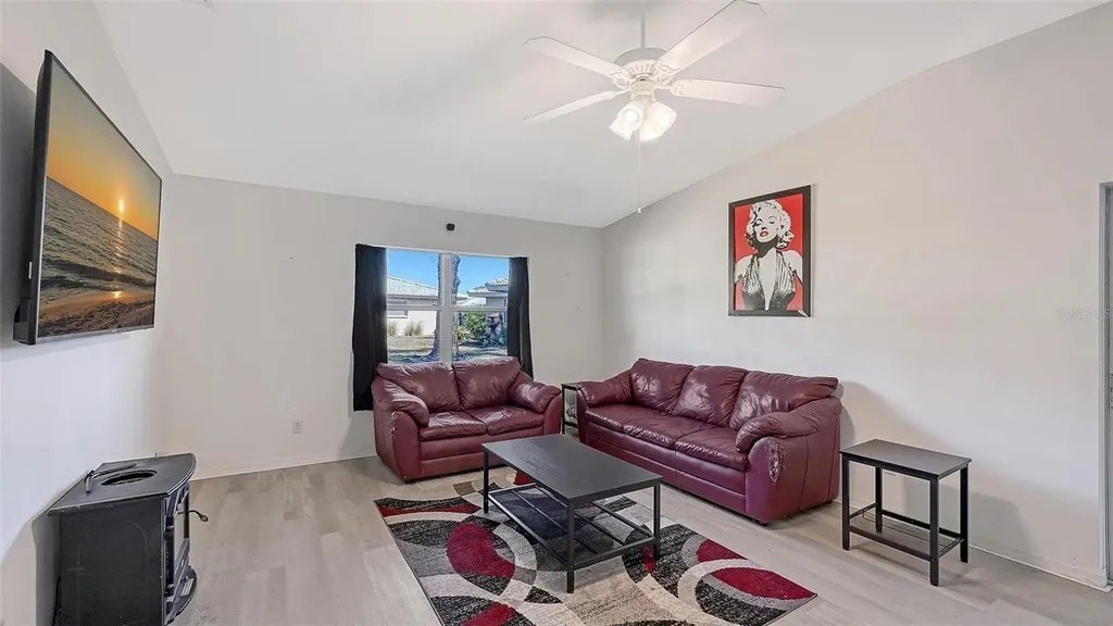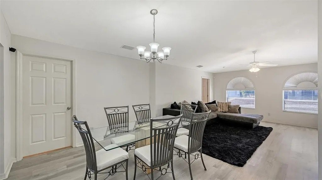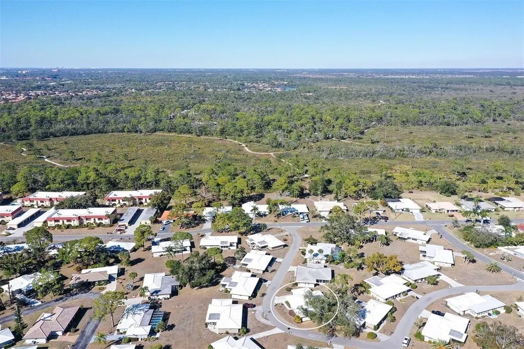One of the largest free-standing villas in desirable Sorrento East, this home offers over 2,000 sq ft of bright, open living space. Built in 2004, the villa features vaulted ceilings, large windows, and driftwood-toned luxury vinyl flooring that create a light, coastal feel throughout. The spacious living and dining areas flow into the kitchen and sunny family room, making the layout ideal for entertaining. The primary suite is privately located on one side of the home and includes a walk-in closet, jacuzzi tub, and walk-in shower, while the second bedroom and bath are on the opposite side and the third bedroom is off the family room and overlooks the peaceful greenspace for added privacy. Sliding glass doors from the living and family rooms open to a screened, enclosed lanai surrounded by mature landscaping-perfect for relaxing. Additional features include a double-wide driveway with parking for four cars, not in a flood zone, newer roof (2021), A/C with UV air purifier and air scrubber (2015), newer A/C ducts (2019), and a whole-home water filtration system (2023). The HOA covers roof replacement, exterior maintenance and painting, landscaping, private roads, and sewer. Sorrento East is a designated bird sanctuary ideally located between Sarasota and Venice, minutes to Nokomis Beach, Oscar Scherer State Park, shopping, dining, and more-offering maintenance-free living in a serene coastal community.